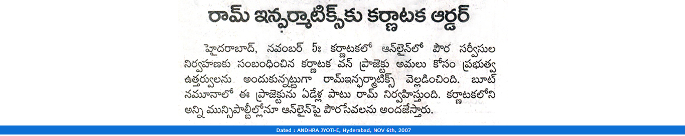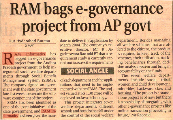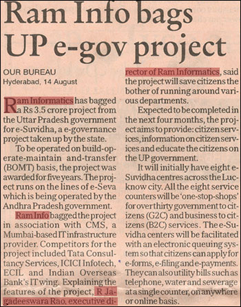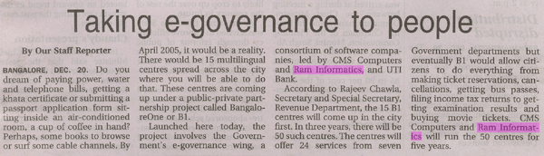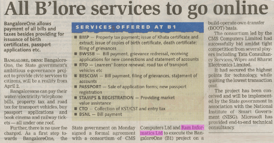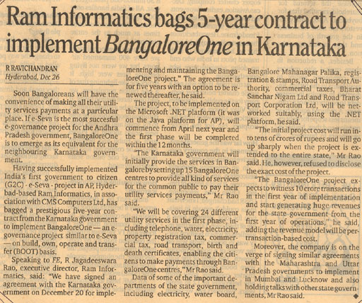 Ram Informatics bags 5-year contract to implement BangaloreOne in Karnataka