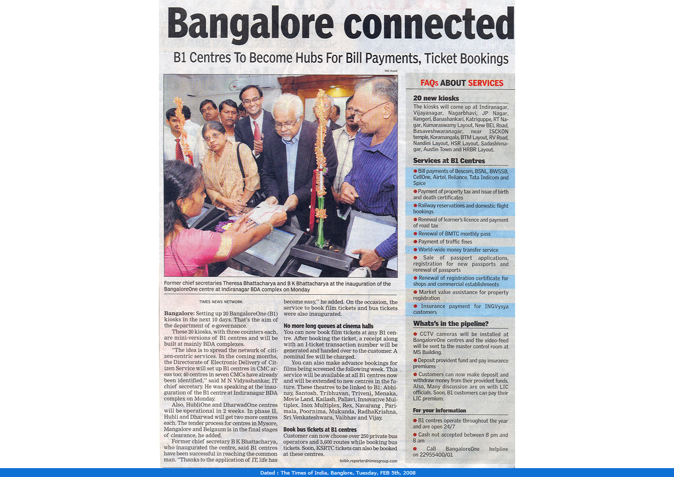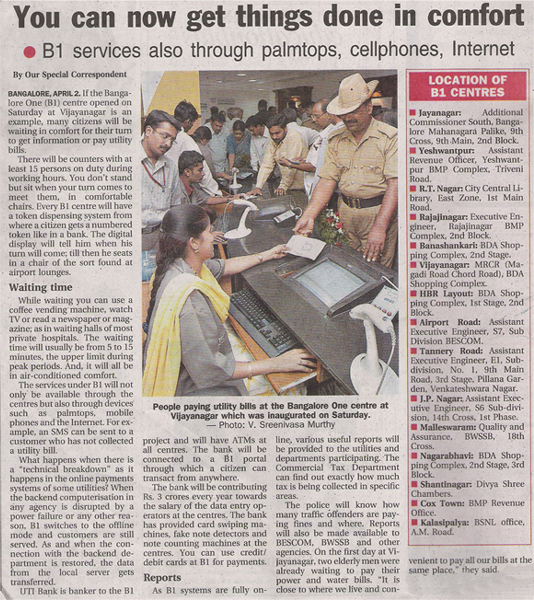 Banglore Connected B1 Centres To Become Hubs for Bill Payments, Ticket Bookings